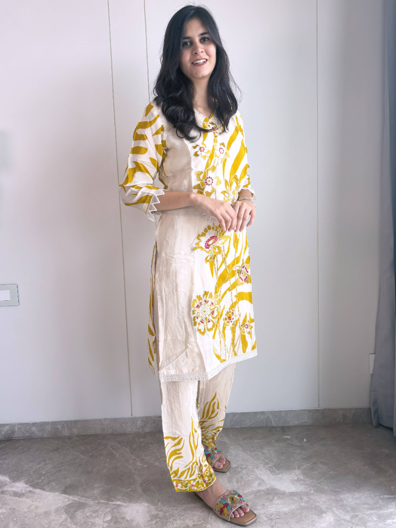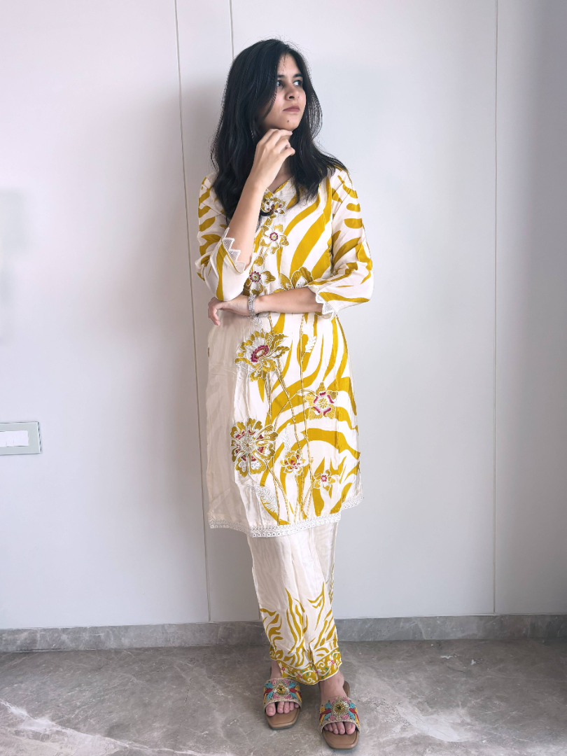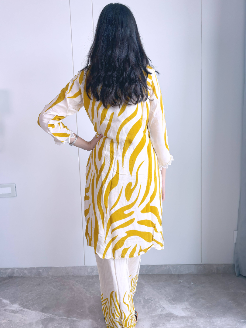 Bright, chic, and comfortable – this Pure Crepe Yellow Plazzo Suit is lightweight, breathable, and stylish. Perfect for office wear, festive occasions, or casual day outings with friends.