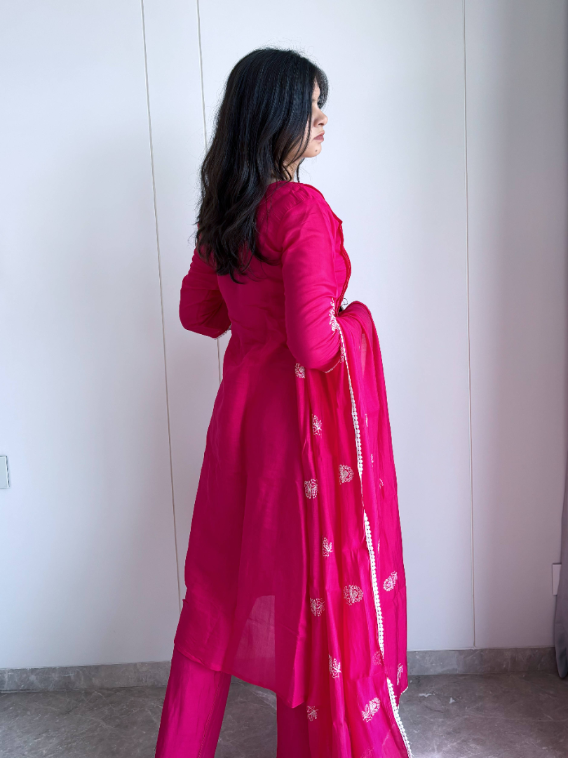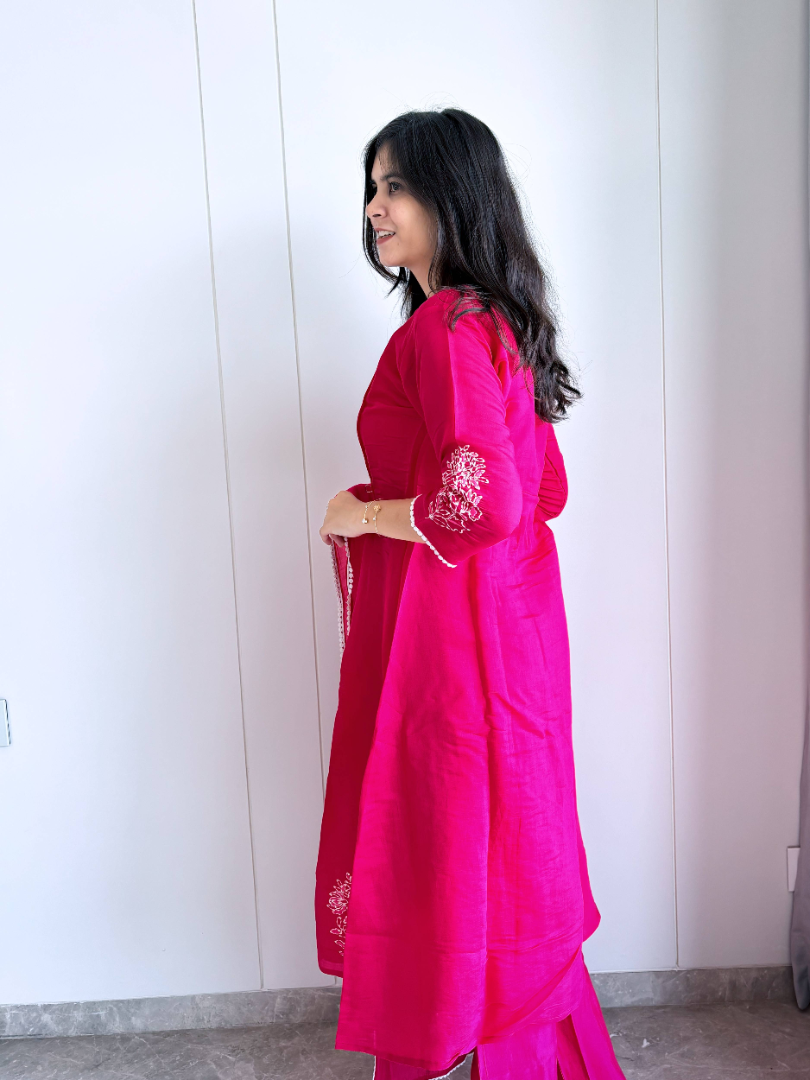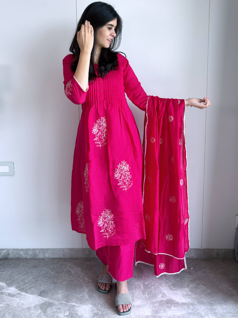 Designed for women who love comfort without compromising on style, this outfit is perfect for festive occasions, casual gatherings, or semi-formal evenings. The bright Rani Pink hue brings a lively charm, while the soft and breathable fabric ensures day-long comfort. Pair it with your favorite accessories and let this versatile piece be your wardrobe essential for moments when you want to shine with grace and ease.